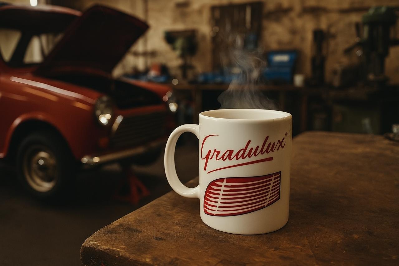 Dans le garage comme sur la route, l’esprit Gradulux s’affiche avec tact. Un clin d’œil vintage, une matière qui tient, un marquage net : de quoi habiller l’atelier et signer votre univers sans en faire trop.