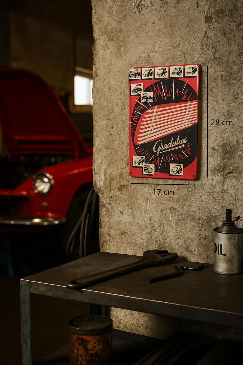 | GRADULUX Metal Sign – 1955 artwork, 28×17 cm |